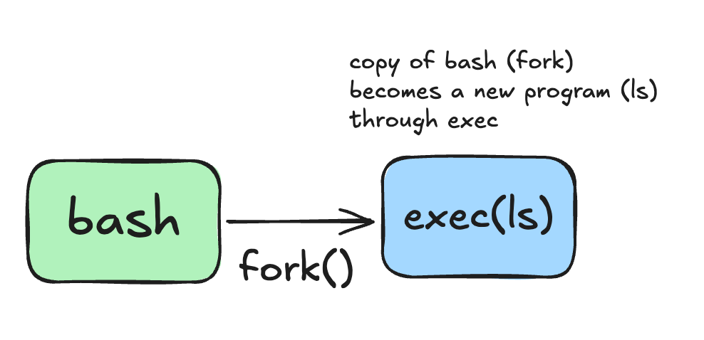 Let’s see what happens when you run a command in your bash shell by invoking the command directly like